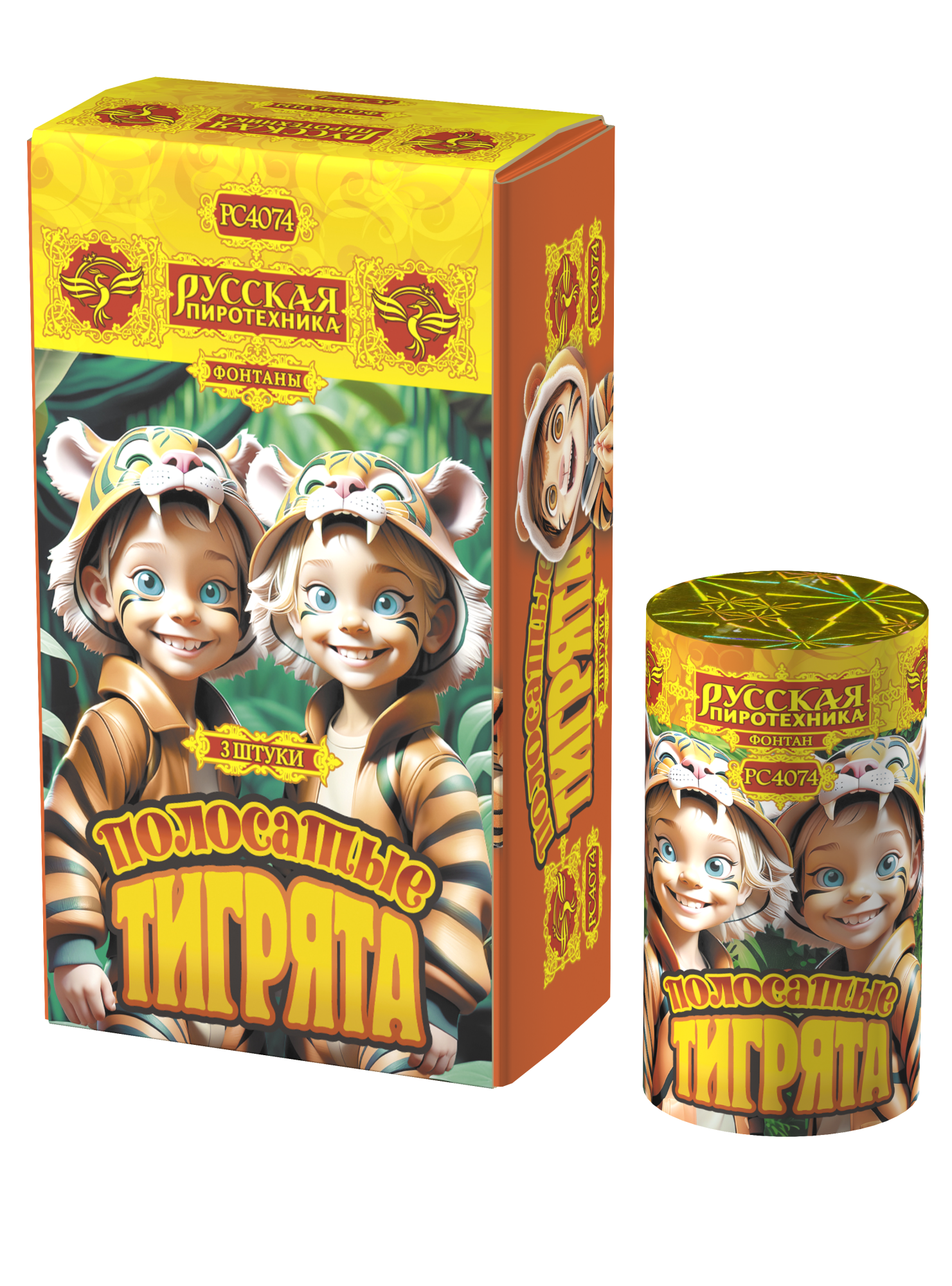 Фонтан пиротехнический Полосатые тигрята (РС4074)